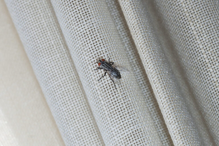Fruit flies appear smaller than house flies and are brown and have red eyes. They also do not make the typical fly buzzing noise while they’re flying. According to experts, they creep and crawl around looking for food and then fly away to find a spot to lay their eggs.
